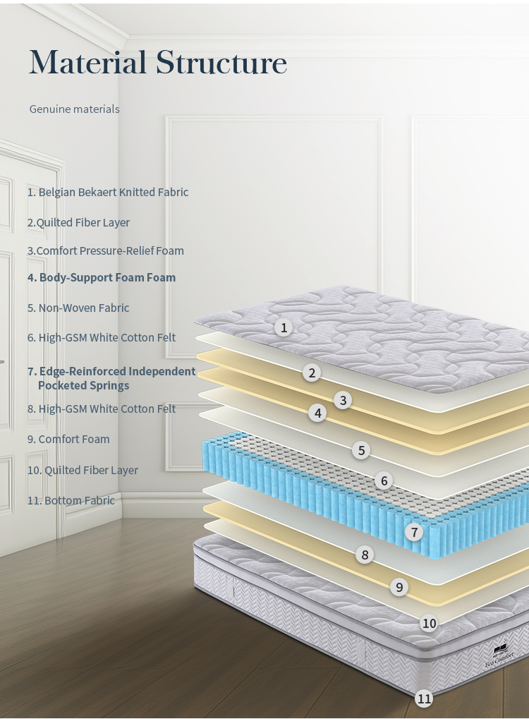 Enjoy superior comfort and support with our premium pocket spring mattress, designed for restful, uninterrupted sleep. Featuring individually wrapped springs, pressure-relief foam, and breathable layers, it delivers excellent body support and long-lasting durability.
